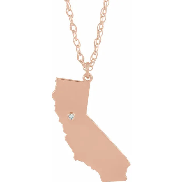 14K Gold State Necklace With .015 CT Natural Diamond City