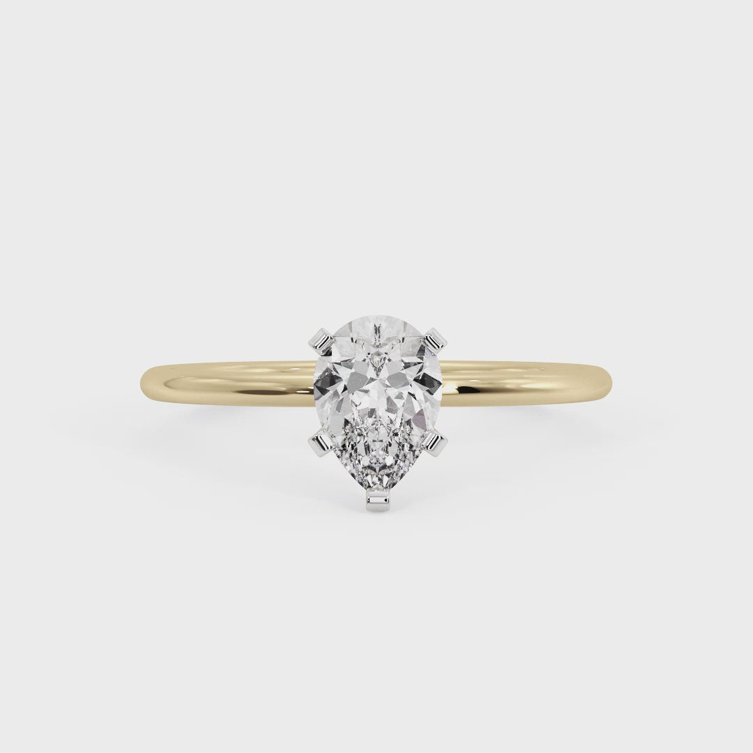 Timeless sophistication with our two-tone 14K Gold Solitaire. Designed to pair beautifully with a diamond band, it offers a seamless, stacked look. With its refined craftsmanship and striking design, this solitaire is the perfect expression of enduring style and unforgettable moments. Client is wearing a 5 Carat Pear.